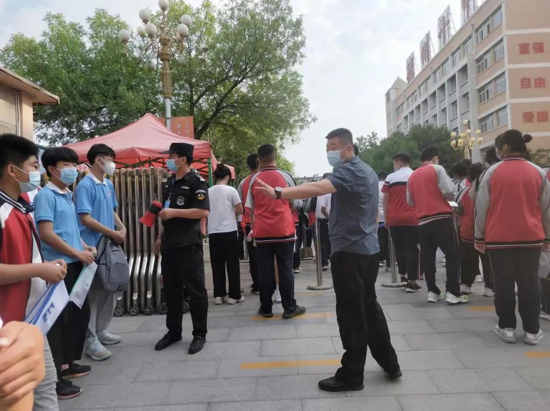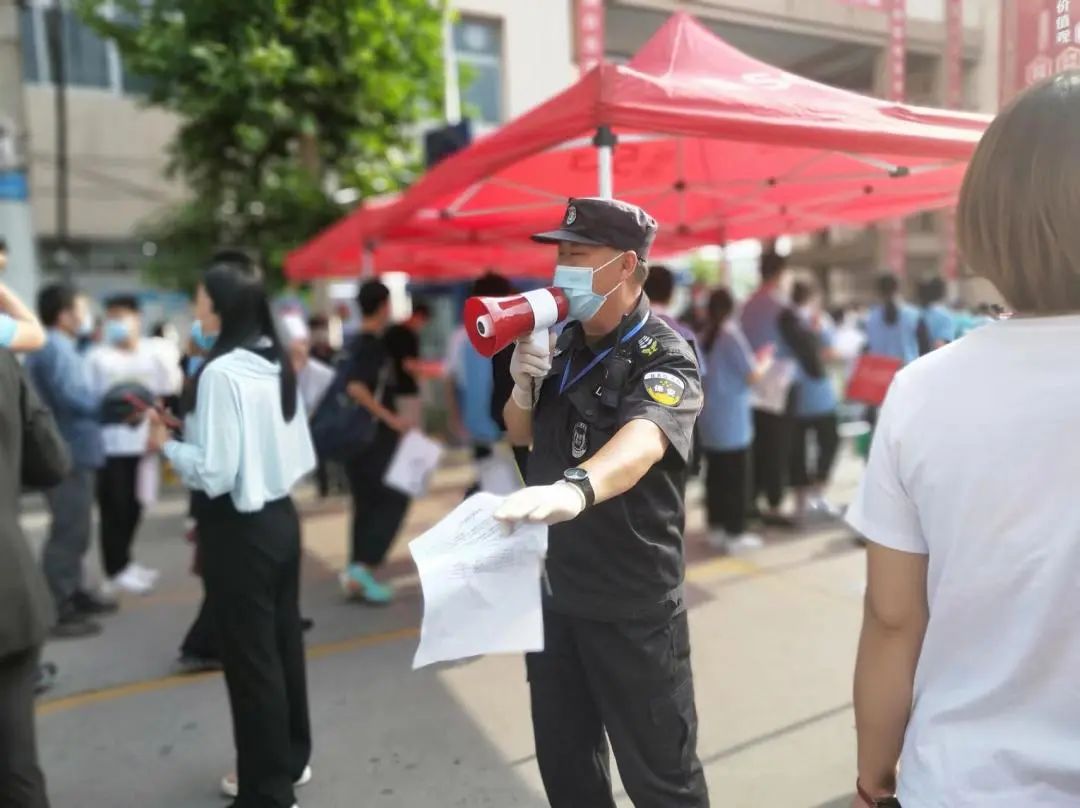 期間,各考點安保負責人趙洪臣、孫輝國、邱洪冰、賈義軍、候佃榮等主管領導及執勤隊員一早提前到達崗位,配合現場工作人員做好證件查驗,嚴禁無關人員混入考場,同時防止人員擁堵、讓考生安全。并積較協助公安機關通過定點執勤和動態巡邏相結合的方式,對轄區內各考點及周邊開展巡邏,引導學生有序入場,維護考場周邊秩序,讓考生進場安全暢通。