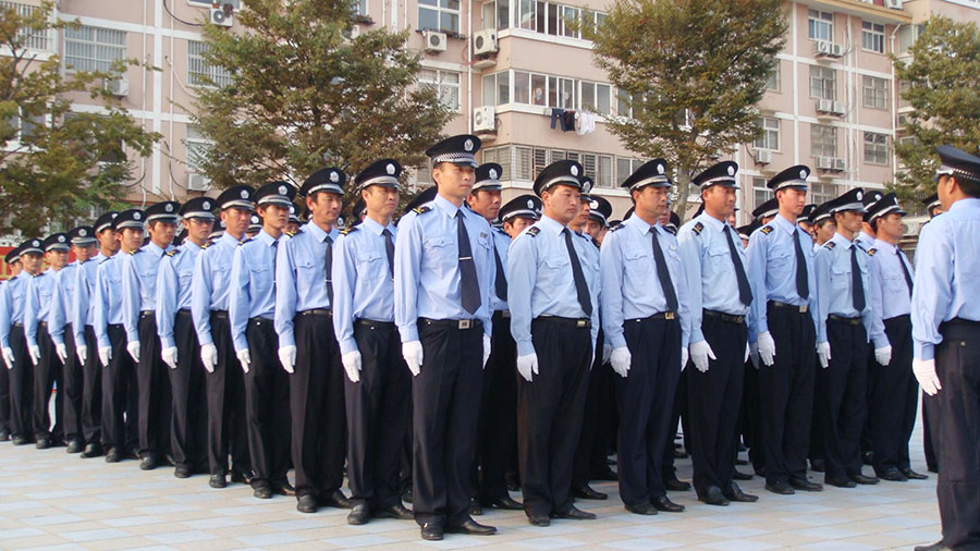 (2)穿著秩序維護員制服時,要扣好衣扣,不得披衣、敞懷、挽袖、卷褲腿。內(nèi)衣下擺不得外露。著夏裝時,必須著制式襯衫,系制式領帶。