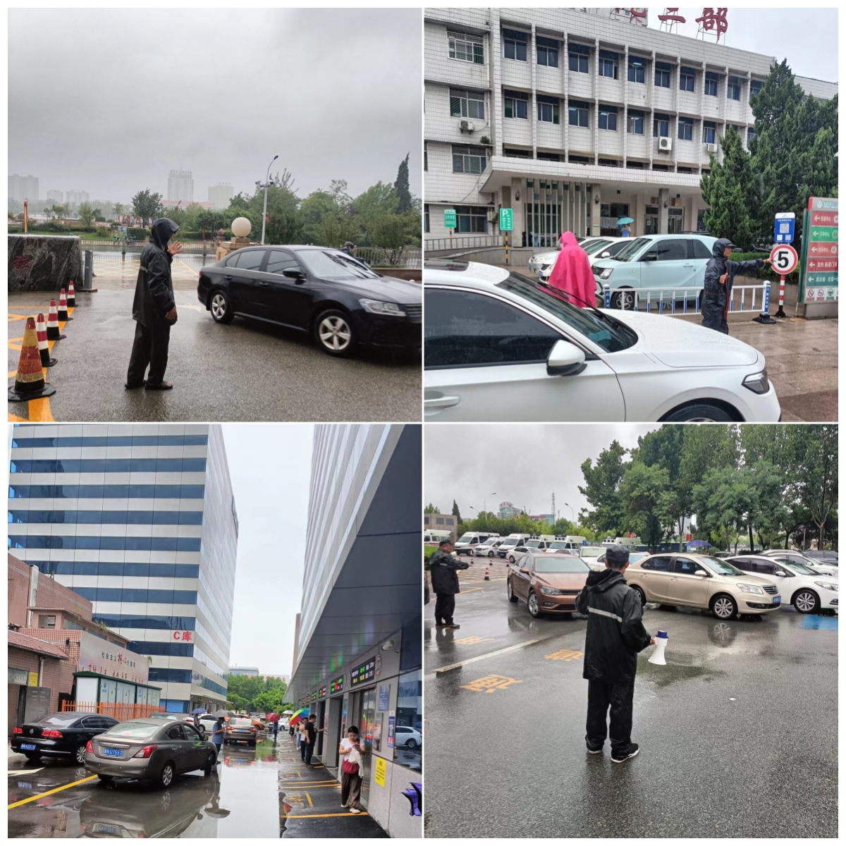因連日降雨,大酒店停車場場地積水泥濘無法停車,就診車輛全部涌入人民醫(yī)院內(nèi),停車場工作壓力驟增,930個立體車庫車位、280個地面車位全天候不間斷循環(huán)停車,僅7月30日一天,就達到歷史最高峰八千余車次,面對空前壓力,隊員們始終冒雨指揮車輛,堅守崗位、盡職盡責,確保就診車輛有序停放,受到院方充分肯定和贊揚。