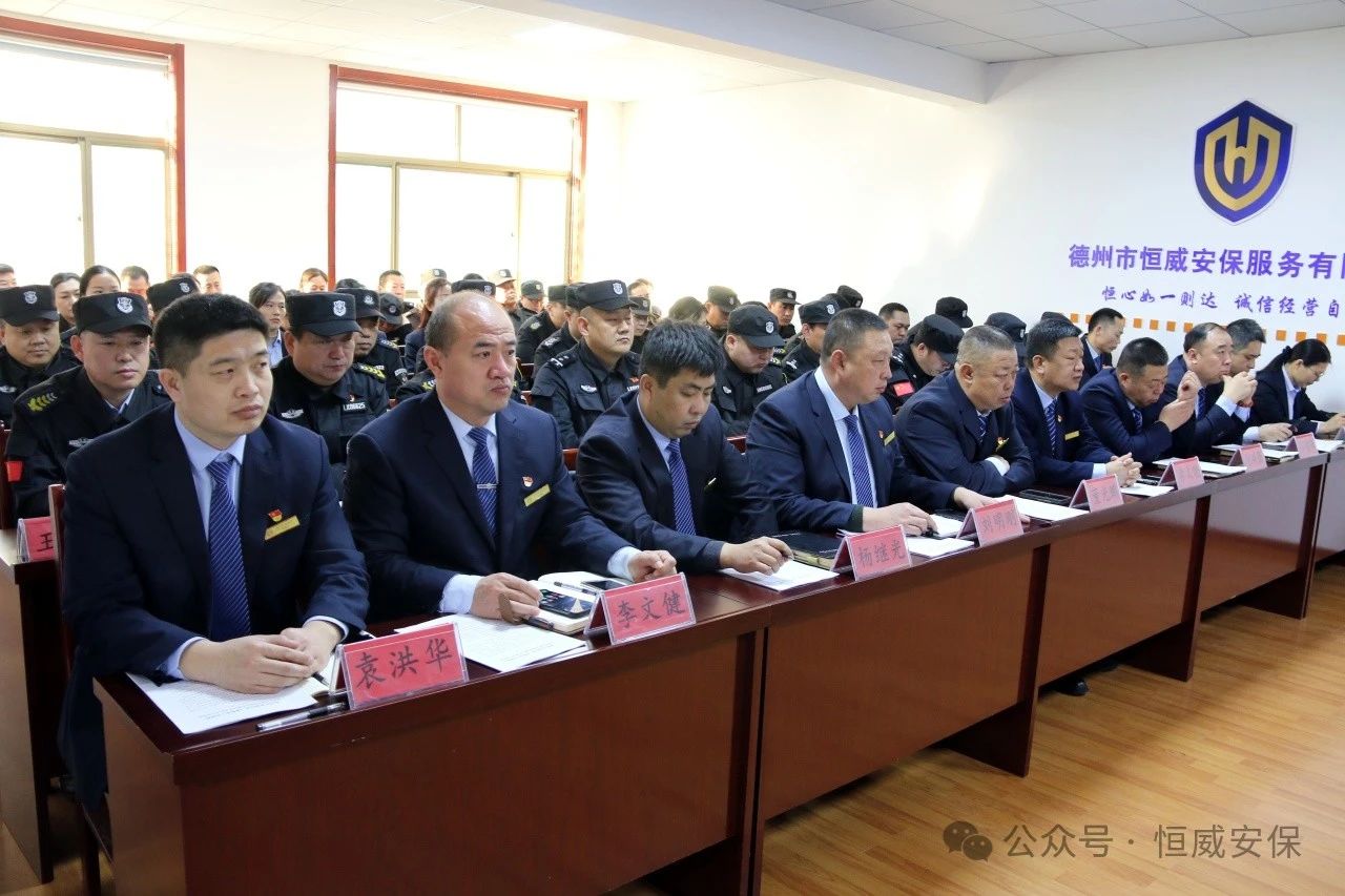 為表彰先進、激勵斗志,總結成績、展望未來,2025年2月19日上午,德州市恒威安保服務有限公司召開2024年度總結表彰大會,公司領導、各級管理人員以及獲得表彰的先進集體代表、優秀管理者、優秀班長、優秀員工代表共60余人參加大會,會議由公司副總經理張玉濤主持。