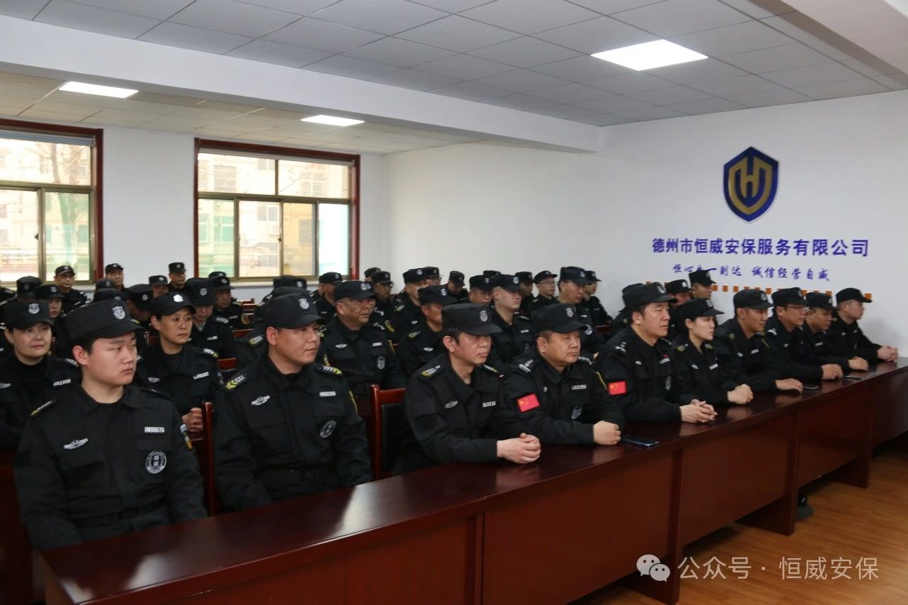 為進一步提升校園安全防范能力,筑牢師生安全屏障,2月28日下午,德州市恒威安保服務有限公司2025年度校園保安員春季專題培訓開班儀式隆重舉行。區教體局副局長于瑛、區公安分局治安大隊大隊長于永墩、德州市恒威安保服務有限公司總經理王新衛等領導出席儀式,來自全區各中小學、幼兒園的60余名校園保安員代表參加活動。會議由公司副總經理張玉濤主持。